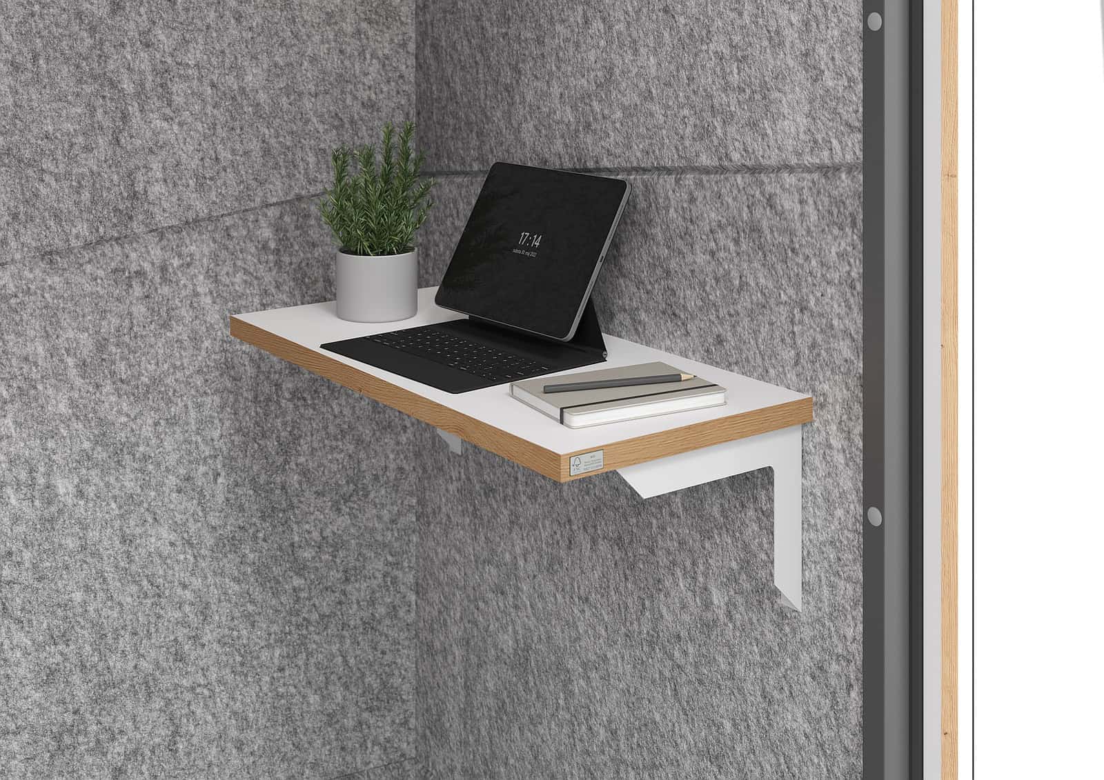 - Akustik-Telefonbox in weiß mit Design-Kante in Ast-Eiche