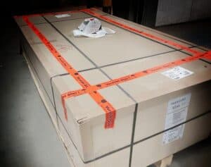 Dieses Produkt wird per Spedition geliefert, d.h. bis zur Bordsteinkante der Lieferanschrift. Die Anlieferung erfolgt in Kartons verpackt auf einer Einwegpalette (Gesamtgewicht mit Verpackung: 326 kg).